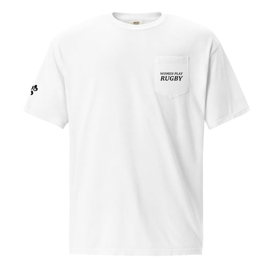 Women Play Rugby Pocket T-Shirt (White Print)